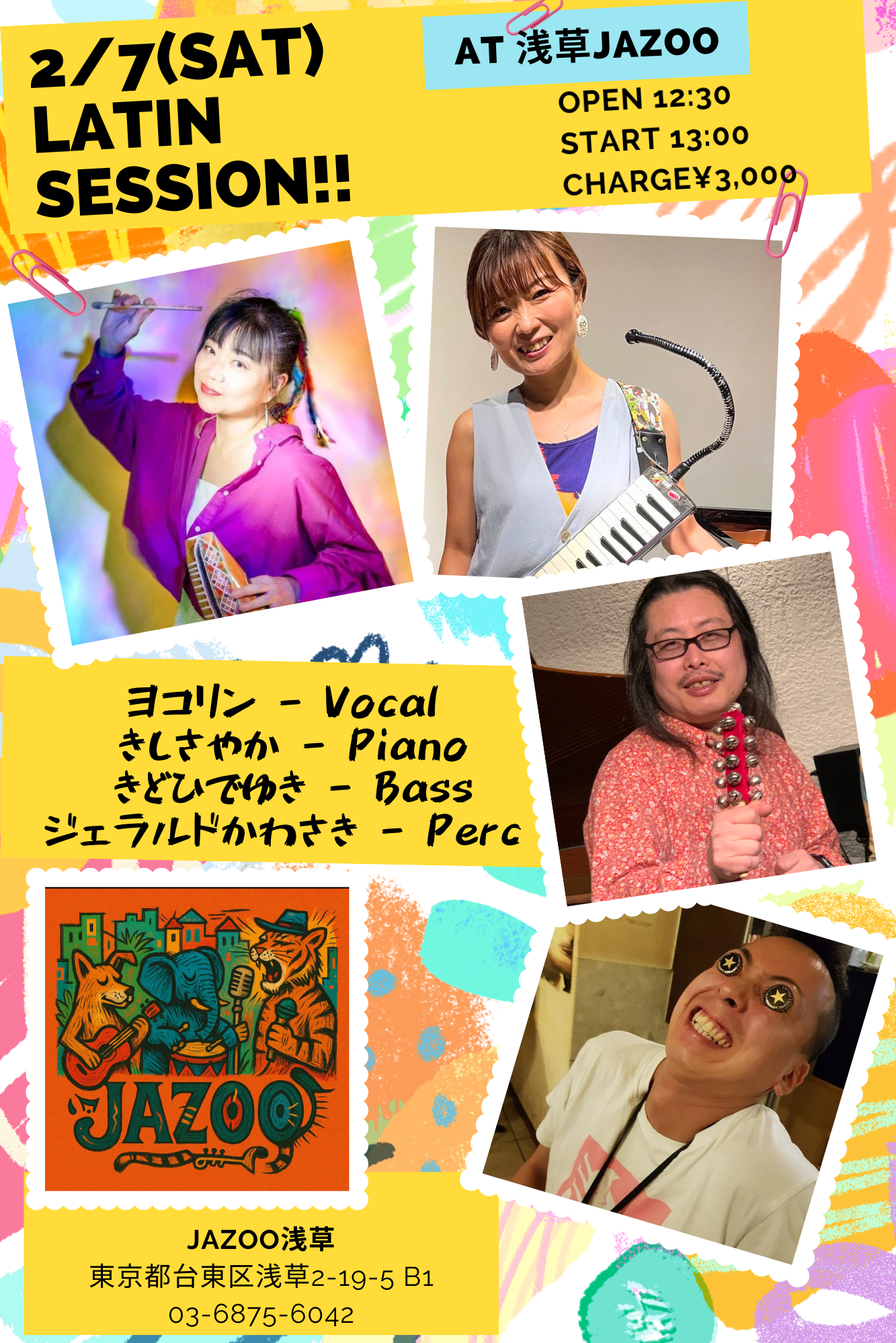 ※ご飯も美味しくとってもアットホームな浅草JAZOO(ジャズー)にてラテンセッション開催!弾きに歌いに、いらしてくださいね〜♪ |